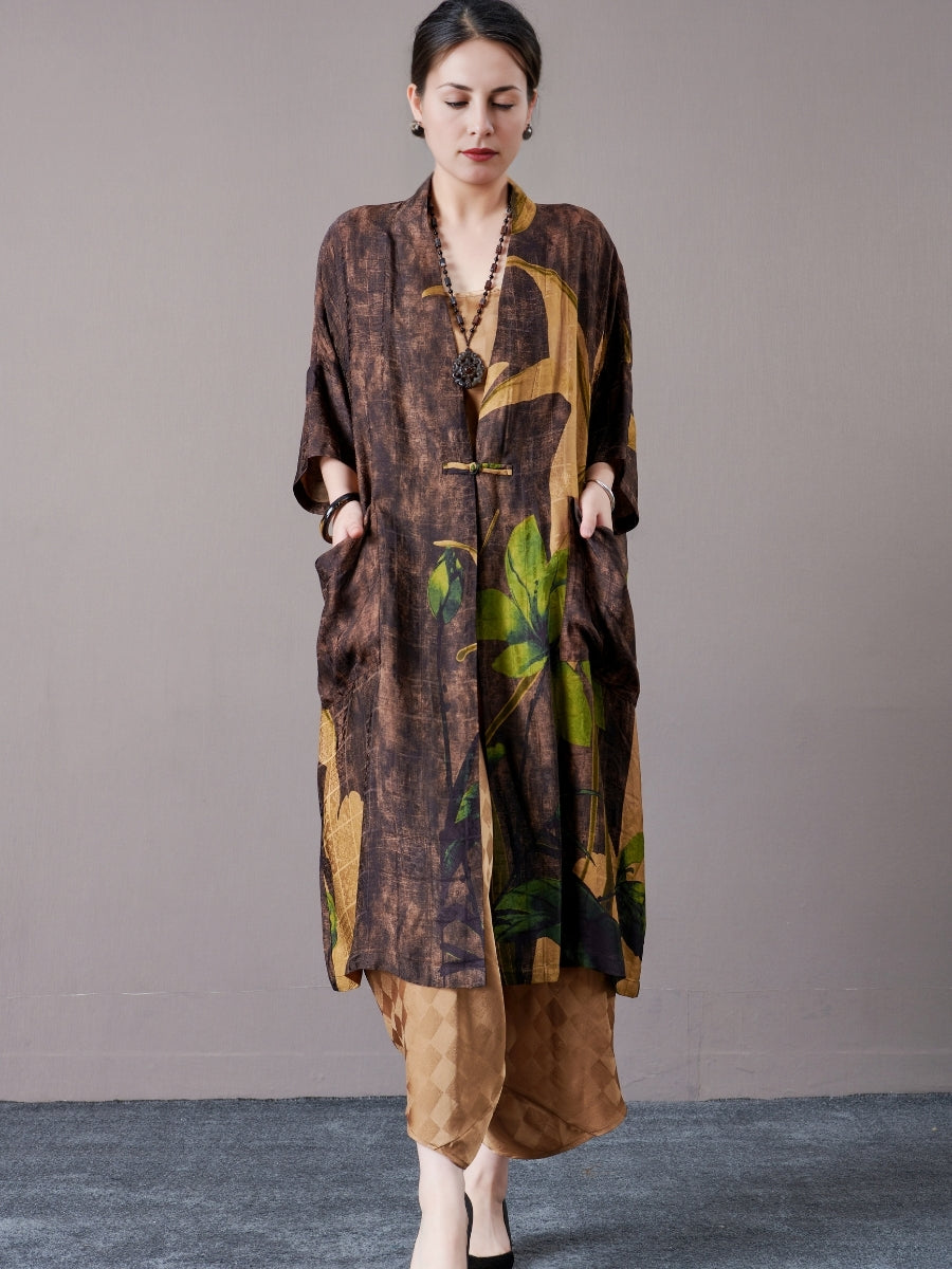 Bohemian Open-Front Long Kimono with Artistic Print